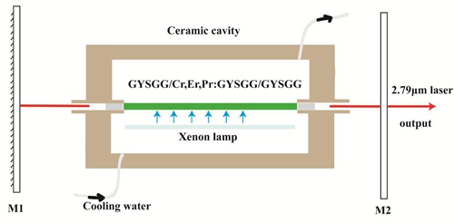 圖1.氙燈泵浦鍵合GYSGG/Cr,Er,Pr:GYSGG激光晶體的示意圖
