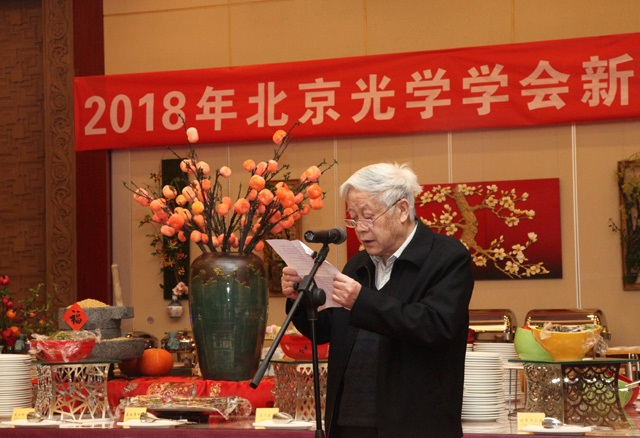 新春團拜會由學(xué)會理事、青年工作委員會副主任楊登才博士主持。在熱烈的掌聲中,北京光學(xué)學(xué)會理事長許祖彥院士致新春賀詞。許祖彥院士說,“在2018年到來之際,我代表北京光學(xué)學(xué)會,向出席團拜會的各位朋友們致以新春的祝福!向金國藩先生和周立偉先生兩位學(xué)會名譽理事長致以崇高的敬意!”