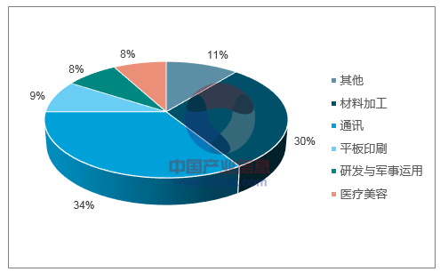 激光器用途十分廣泛,目前主要應用于通信、材料加工、印刷、軍事研發(fā)、醫(yī)療美容等領域。根據數據,2016年, 全球激光器行業(yè)應用領域中材料加工相關的激光器收入 31.20億美元,占全球激光器收入的 30%,為僅次于通訊的第二大激光器應用領域;研發(fā)與軍事運用相關激光器收入 8.32 億美元,占全球激光器收入的 8%;醫(yī)療美容相關激光器收入 8.32 億美元,占全球激光器的 8%。具體情況如下: