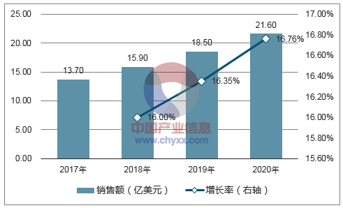與其他激光器相比,光纖激光器具有轉換效率高、光束質量好、體積小巧等優(yōu)勢。近年來,隨著光纖激光技術的發(fā)展和下游行業(yè)需求的增加,光纖激光器市場規(guī)模保持快速增長。傳統(tǒng)制造、汽車生產、重工制造等行業(yè)正越來越多的使用光纖激光器;同時,醫(yī)療美容、通信和航空航天領域也開始使用光纖激光器。根據預測,全球光纖激光器的銷售額將由 2017年的 15.90 億美元增加到 2020 年的 25.00 億美元,年復合增長率為 16.28%。
