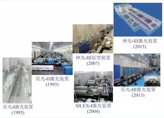 中物院也先后研制了多臺(tái)激光裝置,如圖 2所示。以激光技術(shù)的特點(diǎn)區(qū)分,這些裝置可分為以星光-I、星光-II、神光-III 原型和神光-III 激光裝置為代表的高功率激光技術(shù)和以 SILEX-I和星光-III 激光裝置為代表的超短超強(qiáng)激光技術(shù),多臺(tái)裝置的研制實(shí)現(xiàn)了中國(guó)高功率固體激光技術(shù)研發(fā)歷程中兩次重要“突破”。