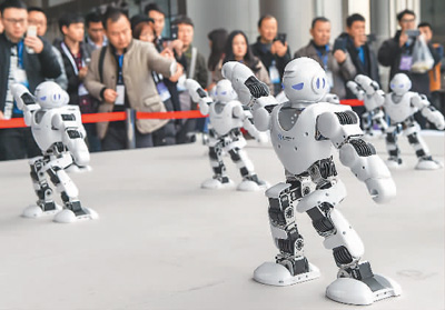 圖為智能機(jī)器人在進(jìn)行舞蹈表演。