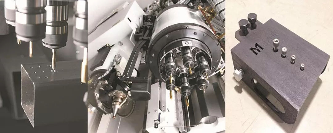 該機床裝載了自動攻絲單元(圖8),從3D激光加工到自動攻絲加工都可以在一臺機器上一次性加工完成,使管型材加工工序高度集中,實現(xiàn)了管型材加工的自動化。該功能在提高生產(chǎn)效率的同時,還有效解決了以往鉆孔和攻絲工序流轉(zhuǎn)的場地占用問題。通過強大的數(shù)據(jù)庫及刀具壽命管理系統(tǒng)可以有效避免在組裝環(huán)節(jié)出現(xiàn)由人工攻絲造成漏攻和亂牙的不良情況,極大提高了自動化生產(chǎn)線的裝配精度與裝配速度。