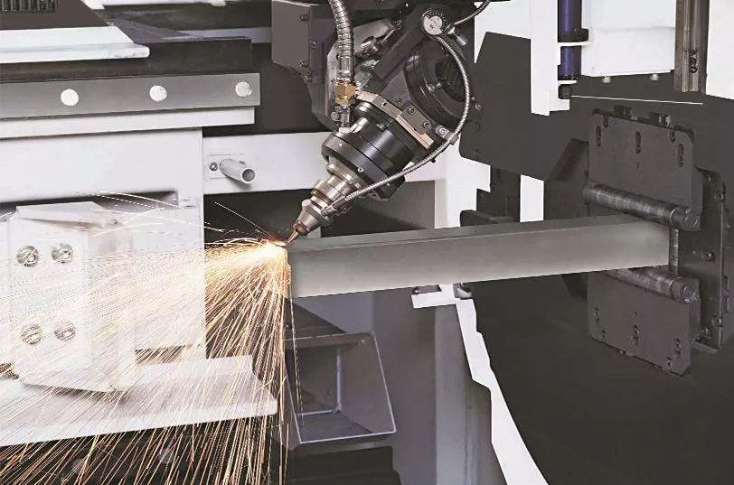 馬扎克公司敏銳地預(yù)見到激光設(shè)備在自動化領(lǐng)域及新能源汽車市場的廣闊前景。在過去的2017年,日本山崎馬扎克株式會社以“DONE IN ONE”理念最新開發(fā)出3D FABRI GEAR 400 III機型(圖3),將管型材激光加工的智能制造推向了一個全新高度。