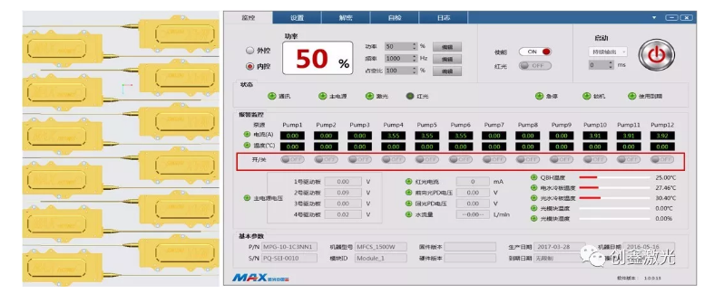 內(nèi)嵌創(chuàng)鑫激光自主研發(fā)的新一代智能化軟件,具備內(nèi)部控制和外部控制能力,人性化的操作監(jiān)控界面,實(shí)時(shí)動(dòng)態(tài)化監(jiān)控激光器的各項(xiàng)運(yùn)行指標(biāo),增加功率、頻率、占空比等豐富功能,用戶可根據(jù)實(shí)際應(yīng)用設(shè)置參數(shù),滿足不同應(yīng)用場(chǎng)景的加工需求。