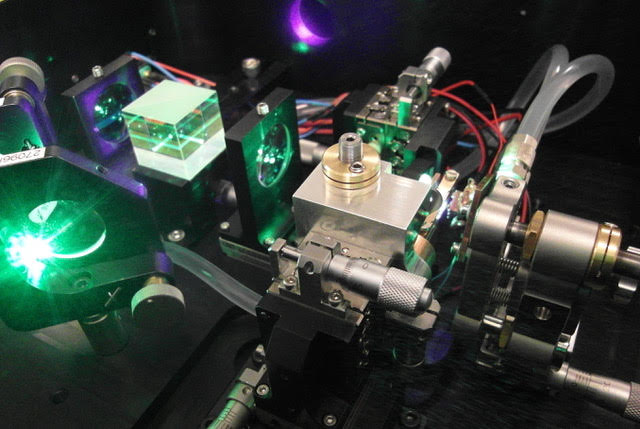 在蘇黎世聯(lián)邦理工學院的超快激光物理(ULP)小組開發(fā)的鎖模10 GHz Yb:CALGO激光器的原型。(照片:Aline Mayer,蘇黎世聯(lián)邦理工學院)
