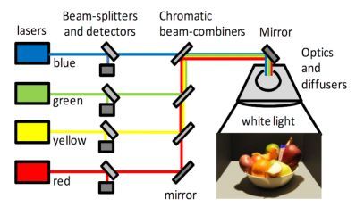 圖3 多基色混合形成白光激光照明實(shí)驗(yàn)(圖片來(lái)源:《Optical Express》)