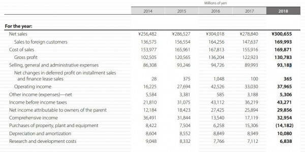 從以下圖表可以看到,AMADA從2014至2016年連續(xù)穩(wěn)步增長,然而在2017年業(yè)績下滑,到2018年才重新恢復(fù)到前年的業(yè)績水平。