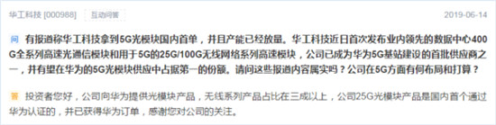 對于其5G光模塊的情況,5月7日,華工科技在互動平臺表示,公司在5G光模塊方面已經(jīng)占據(jù)全球領先地位。