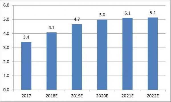 2018-2023年,激光切割設(shè)備將保持年均10%的較高增速,到2023年市場(chǎng)空間超過400億元。