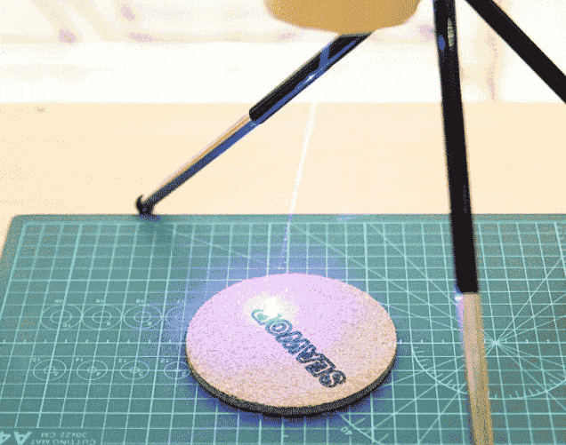 支持雕刻的材質(zhì)很豐富,包括:厚紙板、軟木、布料、毛氈、皮革、木頭、塑料、EVA印章等。略微遺憾的是,金屬、石頭等硬質(zhì)材料還無法雕刻。把要雕刻的物件放在它的下方,在手機App上輸入圖案即可開始雕刻。