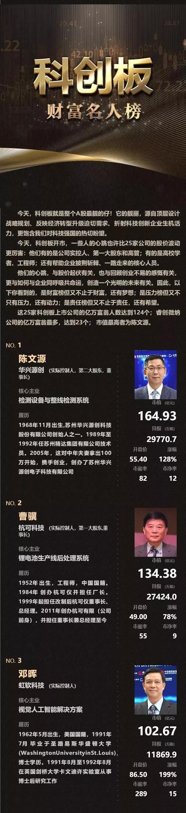 科創(chuàng)板催生124個(gè)億萬富翁(全名單)