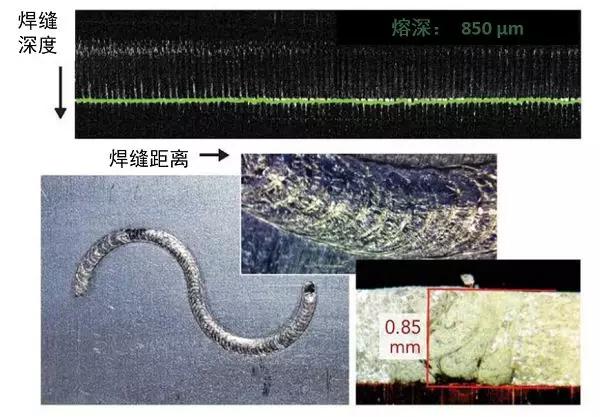 作為傳感器領(lǐng)域一項(xiàng)新興技術(shù),內(nèi)聯(lián)焊接監(jiān)測(cè)解決了長久以來在激光焊接實(shí)時(shí)數(shù)據(jù)采集方面一直存在的多項(xiàng)挑戰(zhàn)。這一新興技術(shù)采用低功率紅外光束,通過與焊接激光同軸的光路進(jìn)行精準(zhǔn)的距離測(cè)量。該技術(shù)可允許在焊接的過程中完成測(cè)量,測(cè)量光束可查看匙孔底部,直接測(cè)量熔深,這也是新一代焊接測(cè)量技術(shù)的一個(gè)重要特征。測(cè)量結(jié)果可在幾毫秒內(nèi)提供與金相測(cè)試結(jié)果幾乎相同的整個(gè)焊縫的大量信息,且無需損壞樣品本身。