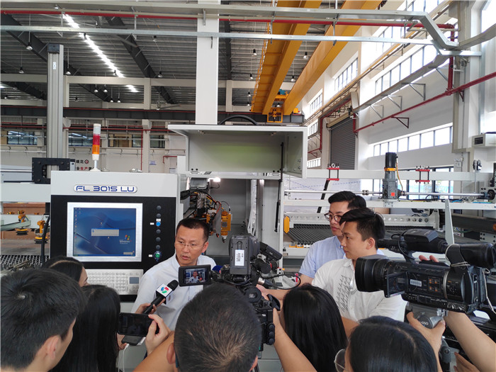 它就是即將參加上海工博會的HF3015LU。聶總、文總和向總分別向眾多媒體朋友介紹這款新品。