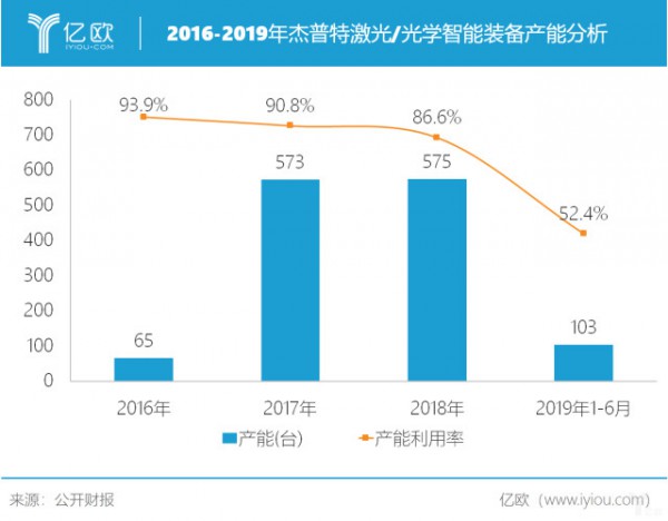 事實上,杰普特的總利潤下滑還與其激光/光學智能裝備產能驟減密不可分。從近幾年的激光/光學智能裝備產能來看,其產品產能在2017年和2018年分別為573臺和575臺,但在今年的上半年,驟降至103臺,與前兩年同期對比差距較大,杰普特準備切換“戰(zhàn)術”了嗎?