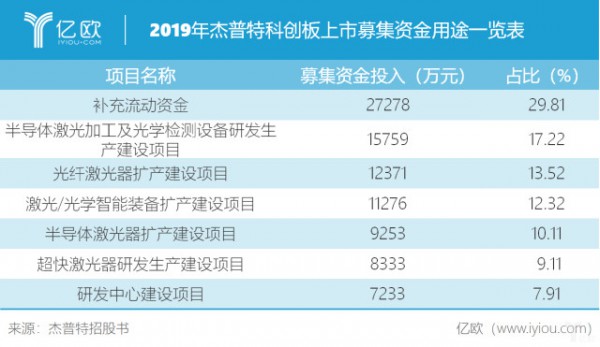 根據(jù)杰普特的招股書顯示,本次募集的資金29.81%將用于補充流動資金,另外七成資金將用于激光/光學智能裝備和激光器項目生產、擴產以及研發(fā)中心的建設。這樣的打法,也說明了此次杰普特抱著“壯士斷腕”的決心,勢必要加強自身核心技術的研發(fā),實現(xiàn)產能的再次激增。