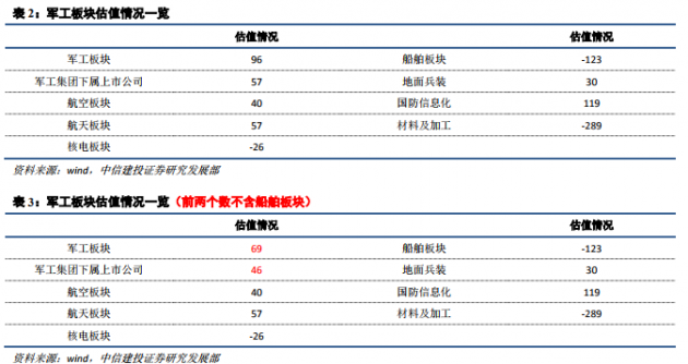 行業(yè)分析人士指出,目前,軍工板塊整體估值為 96 倍,處于歷史中低部水平。若剔除船舶板塊,軍工板塊整體估值為 69 倍,同樣處于歷史中低部水平。從上市公司屬性來看,軍工集團(tuán)下屬上市公司估值水平為 57 倍;分板塊來看,國(guó)防信息化板塊、船舶板塊估值與整體水平相近,材料及加工上市公司估值高于整體水平。