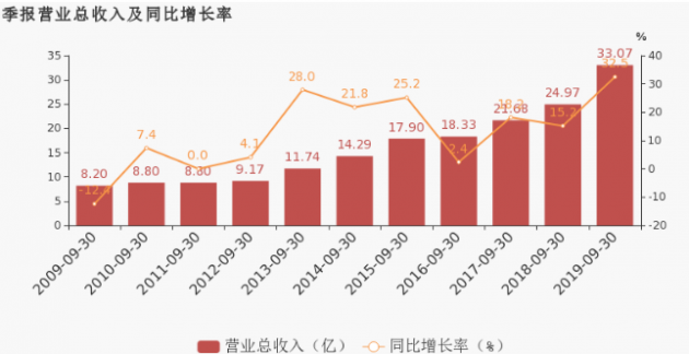 10月30日披露的聯(lián)創(chuàng)光電第三季度報(bào)告顯示,2019年前三季度,公司總營(yíng)收為33.06億元,同比大增32.46%;累計(jì)實(shí)現(xiàn)凈利1.54億元,基本每股收益為0.3489元。