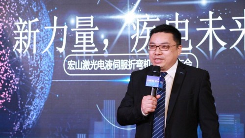 12月20日,宏山激光新力量,疾電未來(lái)——電液伺服折彎?rùn)C(jī)新品發(fā)布會(huì)在宏山激光總部召開(kāi),活動(dòng)正式發(fā)布了HC1103電液伺服折彎?rùn)C(jī),帶來(lái)全新升級(jí)折彎自動(dòng)化作業(yè)體驗(yàn)。
