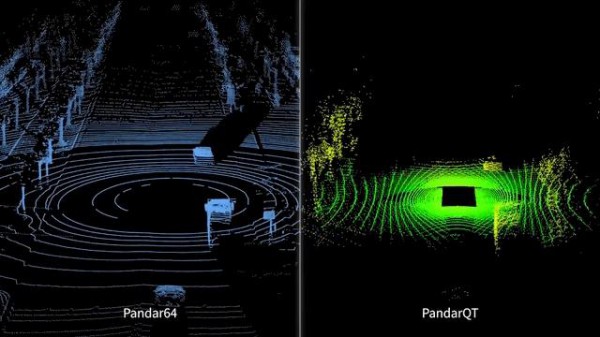 圖為:Pandar64和PandarQT對近距障礙物識別時的對比。