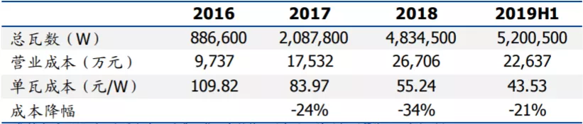 創(chuàng)鑫激光2016-2019上半年成本下降幅度: