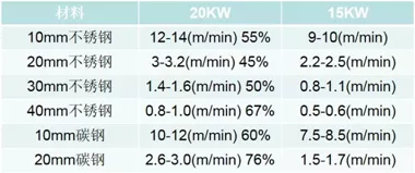 過去幾年內(nèi)工業(yè)應用的激光器功率不斷提高,從最開始的200W、500W、800W、1000W、1500W到現(xiàn)在的2000W、3000W、6000W、12000W甚至部分客戶已經(jīng)開始使用的15000W、20000W。在一定范圍內(nèi),激光加工效率一般隨著功率的提升呈現(xiàn)一定的非線性提高,如奔騰激光發(fā)布的20000W激光切割設(shè)備相比較15000W設(shè)備,平均加工效率提高50%以上,但是功率僅提高33%,呈現(xiàn)出隨著功率的提升,設(shè)備的效率功率提高比大于1,具體如下所示: