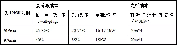 976nm比915nm泵浦的光電轉(zhuǎn)化效率提高25%以上;12kW的976nm比915nm產(chǎn)品成本低10%左右。目前行業(yè)內(nèi)主要有美國(guó)IPG、美國(guó)coherent及美國(guó)GWLASER TECH在工業(yè)終端批量使用基于976nm泵浦技術(shù)的光纖激光器。