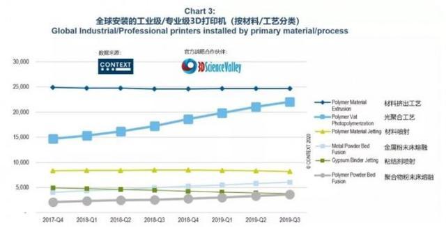 根據(jù)3D科學(xué)谷戰(zhàn)略合作伙伴Context的研究,在過去連續(xù)12個(gè)月(2018 第四季度-2019年第三季度)中,工業(yè)級(jí)/專業(yè)級(jí)3D打印機(jī)使用的塑料3D打印材料利用率增長(zhǎng)了8%。