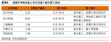 1.6 半導(dǎo)體:設(shè)備企業(yè)均已部分復(fù)工,前期訂單正常交付