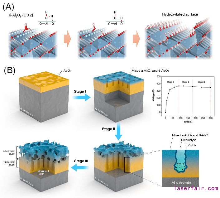 該工作首次實現(xiàn)了低表面能材料中嵌負表面能(θ-Al2O3)與零表面能空氣微/納孔結構一起組成新一代超疏水材料結構,并實現(xiàn)了其一步法連續(xù)制備。其優(yōu)異的力學、耐高溫、抗老化及耐磨損等性能,將滿足工程領域復雜苛刻的應用需求,在航空航天、海洋裝備等領域展現(xiàn)出廣闊的應用前景。相關工作由黃維院士邀請,以題為 “Tuning superhydrophobic materials with negative-surface-energy domains”的文章形式發(fā)表在Research(Science Partner Journal (SPJ) program)期刊上 (Research, 2019, 1391804, DOI: 10.34133/2019/1391804)。