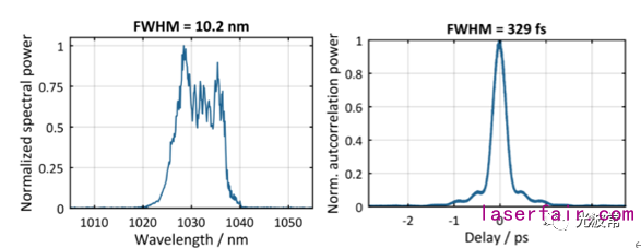 圖2 合束后光譜(左)和自相關(guān)曲線(右)