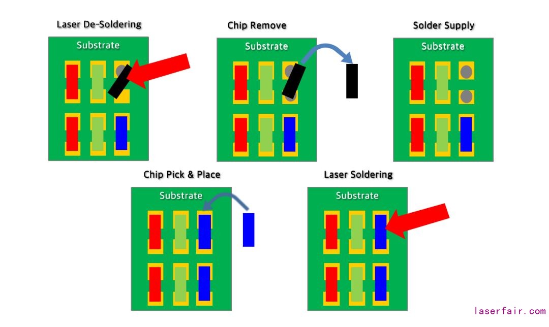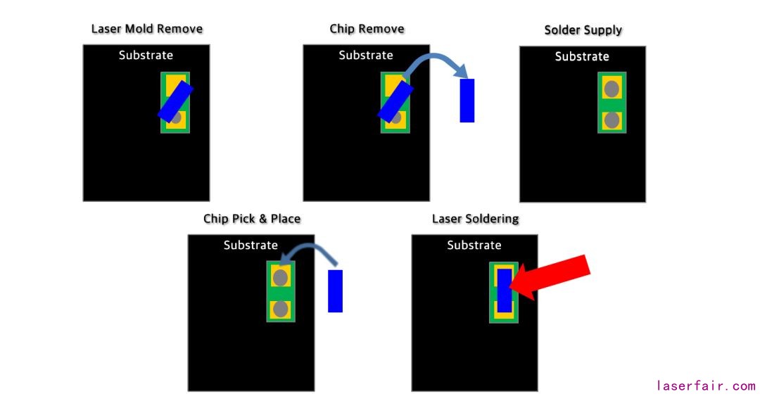 激光來焊接極小領(lǐng)域的良品 Chip, 可應(yīng)用于 ACF 和 Solder Paste 方式