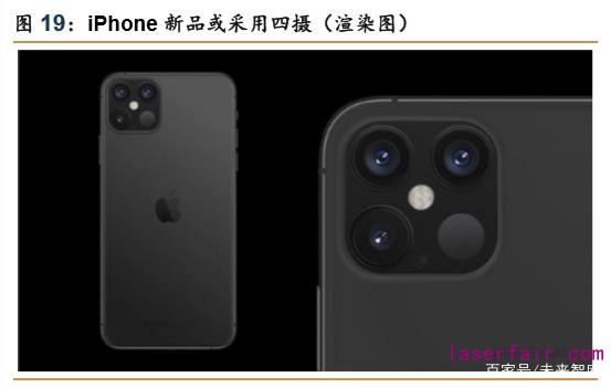 四攝像頭有望落地:在攝像頭方面,iPhone12 有望將 iPhone 11 中的三攝升級到 四攝,新增加一顆超長焦鏡頭。新增的超長焦鏡頭有望為 iPhone 帶來 2-10 倍的光 學(xué)變焦。攝像頭數(shù)量、排布的再度創(chuàng)新(iPhone 11 為三攝)或帶來藍寶石鏡頭蓋 板形狀或面積的再度更改。