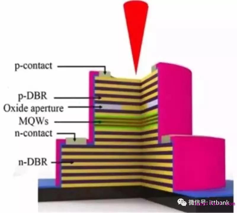 ▲VCSEL 激光器的內(nèi)部結(jié)構(gòu)示意圖