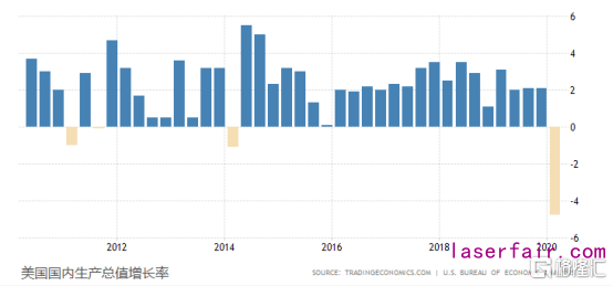 經(jīng)濟上美國也遭受了自金融危機以來的最大重創(chuàng),除新公布的4月PMI指數(shù)達到階段性歷史低位外,一季度經(jīng)濟也是嚴重下滑。上周三,美國商務部發(fā)布美國一季度GDP初值環(huán)比折年率下降4.8%,這是2014年二季度以來美國經(jīng)濟首次萎縮,創(chuàng)2008年四季度以來最大降幅,低于市場預期值-4%。