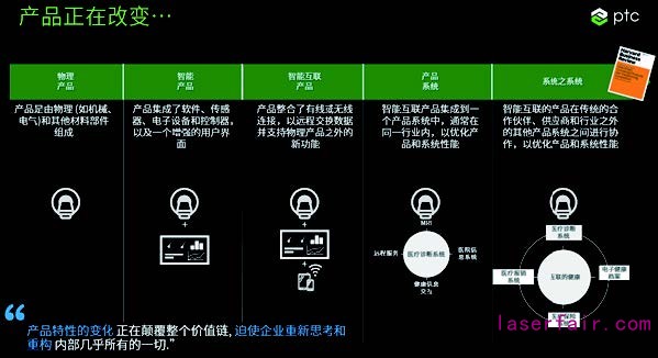 這樣的行業(yè)和產(chǎn)品智能互聯(lián)的變化就如同PTCCEOJimHeppelmann在哈佛商業(yè)評論寫到的,“產(chǎn)品特性的變化正在顛覆整個價值鏈,迫使企業(yè)重新思考和重構內(nèi)部幾乎所有的一切?!边@意味著制造企業(yè)需要重新思考未來融入系統(tǒng)之系統(tǒng)的智能互聯(lián)產(chǎn)品帶來的價值,以及由此引發(fā)的價值的轉(zhuǎn)移: