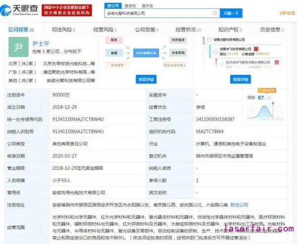 天眼查數(shù)據(jù)顯示,安徽光智科技有限公司成立于2018年,注冊資本9億元,經(jīng)營范圍包括光學(xué)材料和光學(xué)元器件、紅外光學(xué)材料和元器件、激光晶體材料和元器件、非線性光學(xué)晶體材料和元器件、醫(yī)療探測材料和元器件、輻射探測材料與元器件、紅外探測材料及元器件、太赫茲探測材料及元器件、光學(xué)材料加工及檢測、光電材料與元器件、半導(dǎo)體材料與元器件、激光設(shè)備及零部件、自動(dòng)控制設(shè)備的研制、生產(chǎn)、技術(shù)服務(wù)、銷售及進(jìn)出口業(yè)務(wù)(國家禁止和限定進(jìn)出口的商品和技術(shù)除外)。
