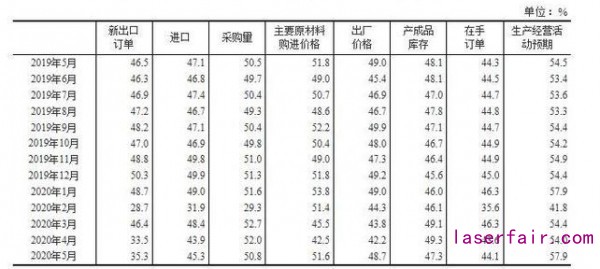 值得注意的是,本月生產指數較上月下降0.5個百分點,不過仍保持在53.2%的高位,這表明企業(yè)生產在前期較快恢復的情況下,本月回升勢頭稍有放緩。本月從業(yè)人員指數為49.4%,較上月下降0.8個百分點。本月新出口訂單指數雖較上月上升了1.8個百分點,但仍處于35.3%的歷史地位,低于去年同期11.2個百分點。