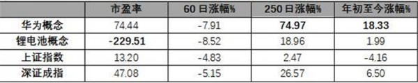 從二級市場表現(xiàn)來看,華為概念250日漲幅以及年內(nèi)漲幅均大幅度跑贏滬、深兩指。而從60日漲幅來看,聯(lián)贏激光所處的華為概念板塊與鋰電池概念板塊表現(xiàn)較弱,整體跌幅高于滬、深兩指。