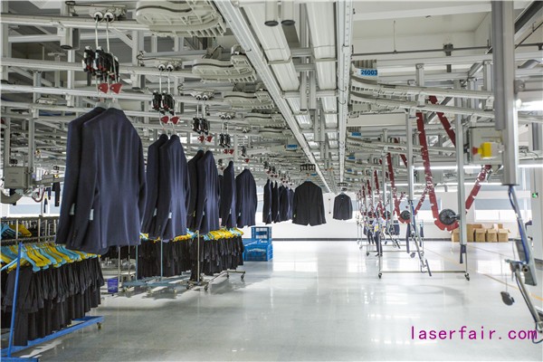 走進(jìn)位于寧波市海曙區(qū)的雅戈?duì)栁鞣a(chǎn)車間,一股“智造”新風(fēng)撲面而來:占地面積1萬平方米的車間里,西服、西褲像接受檢閱的士兵整齊列隊(duì),由吊掛系統(tǒng)運(yùn)送到各個(gè)工位;在工位上,每個(gè)工人都會(huì)按照面前平板電腦提供的工藝提醒,分別對(duì)西服面料進(jìn)行收省拼側(cè)片、前片推門等工序;此后,吊掛系統(tǒng)會(huì)根據(jù)衣架上的二維碼對(duì)西服和西褲進(jìn)行掃描配對(duì),確認(rèn)顏色、尺碼無誤后,再成套運(yùn)送到倉庫。