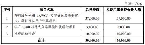 仕佳光子擬在上交所科創(chuàng)板發(fā)行新股不低于4600萬股,不低于發(fā)行后總股本的10%。本次發(fā)行的保薦機構(gòu)是華泰聯(lián)合證券。擬募集資金5億元,其中3.7億元用于“陣列波導光柵(AWG)及半導體激光器芯片、器件開發(fā)及產(chǎn)業(yè)化項目”,3000萬元用于“年產(chǎn)1,200萬件光分路器模塊及組件項目”,1億元用于“補充流動資金”。