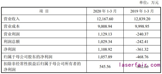 2020年一季度,仕佳光子營業(yè)收入為1.22億元,去年同期為1.28億元;歸屬于母公司股東凈利潤為1057.89萬元,去年同期為-468.76萬元;扣除非經(jīng)常性損益后歸屬于母公司股東凈利潤為545.56萬元,去年同期為-802.66萬元;經(jīng)營活動產(chǎn)生的現(xiàn)金流量凈額為1445.51萬元,去年同期為-904.06萬元。