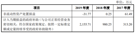 2017年、2018年和2019年,仕佳光子計入當期損益的政府補助金額分別為313.20萬元、980.25萬元和2155.71萬元。