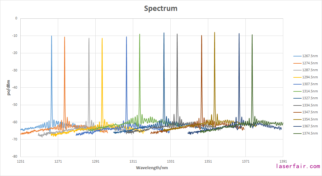 該款12波MWDM激光器芯片,完全滿(mǎn)足中國(guó)移動(dòng)提出的5G Open-WDM/MWDM半有源創(chuàng)新前傳解決方案標(biāo)準(zhǔn),在CWDM前6波的基礎(chǔ)上,中心波長(zhǎng)左右各偏移3.5nm,從而擴(kuò)展通道實(shí)現(xiàn)了12個(gè)波長(zhǎng)波分復(fù)用。由于復(fù)用了現(xiàn)有CWDM激光器芯片產(chǎn)業(yè)鏈,可以有效降低MWDM激光器芯片的研發(fā)成本并實(shí)現(xiàn)快速量產(chǎn)發(fā)貨。