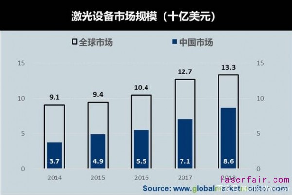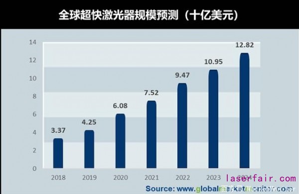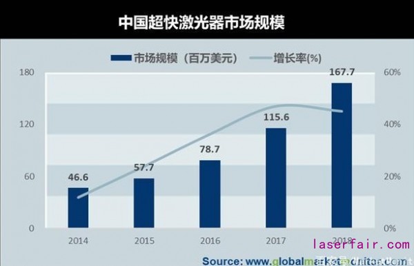 中國市場方面,激光技術(shù)在消費電子、新型顯示、激光內(nèi)雕、生物醫(yī)療等領(lǐng)域獲得了越來越多的應(yīng)用,國內(nèi)傳統(tǒng)制造業(yè)正面臨深度轉(zhuǎn)型和升級,超快激光市場在近幾年也取得了較大發(fā)展,2018年超快激光市場規(guī)模達到11.74億元,增速達到45.06%,是整個激光設(shè)備市場增長速度的兩倍。
