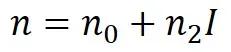 另外,超短光脈沖由于高峰值功率可使材料的折射率產(chǎn)生微小變化,變化量和強(qiáng)度相關(guān)。材料折射率的非線性變化反過來使光脈沖的振蕩模式產(chǎn)生相位差,這個過程叫做自相位調(diào)制。光強(qiáng)相關(guān)的折射率用下式表示,其中n2為非線性系數(shù)。