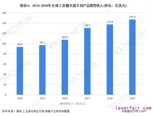 2019年全球激光器銷售額達(dá)147.3億美元,呈平穩(wěn)態(tài)勢(shì)