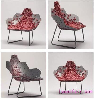4.丹麥設(shè)計(jì)師SOFIE布倫納設(shè)計(jì)的腮紅椅子。椅子表面使用硬質(zhì)鋁殼制作,并利用激光切割技術(shù)處理座椅表面的穿孔,再配上軟軟的坐墊。整個(gè)設(shè)計(jì)集合了觸覺(jué)、感覺(jué)和視覺(jué)上的藝術(shù)效果。