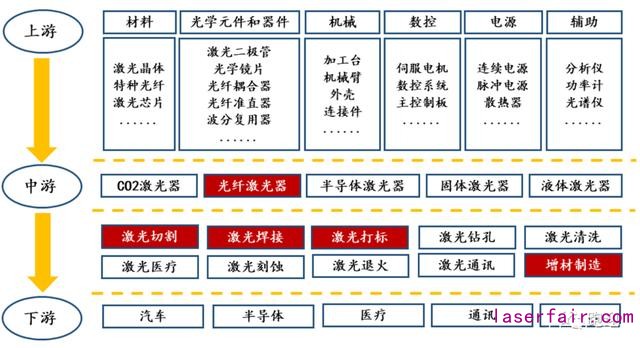 光纖激光器為光纖激光加工產(chǎn)業(yè)鏈的核心部分,與下游需求聯(lián)系緊密。加工產(chǎn)業(yè)鏈上游為光纖激光器及光學(xué)元器件、電學(xué)材料、數(shù)控系統(tǒng)等輔助器件,中游為激光系統(tǒng)集成設(shè)備,下游是激光切割、激光焊接、激光打標(biāo)等激光應(yīng)用領(lǐng)域,其中光纖激光器是光纖激光加工產(chǎn)業(yè)鏈的核心部分。光纖激光器行業(yè)的下游行業(yè)主要是激光設(shè)備集成商。本行業(yè)與下游行業(yè)的關(guān)聯(lián)度較高,下游產(chǎn)業(yè)快速發(fā)展進(jìn)一步增加光纖激光器的市場需求,極大提升光纖激光器行業(yè)的市場空間和技術(shù)水平。宏觀經(jīng)濟(jì)形勢的變化將對激光加工產(chǎn)業(yè)等制造行業(yè)帶來一定的影響,進(jìn)而造成對光纖激光器產(chǎn)品需求的波動,影響公司的發(fā)展和盈利能力。