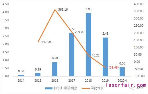 2014-2019年,營業(yè)收入由2.32億元增長至20.10億元,復(fù)合增長率54.01%,19年同比增長37.49%,2020H1實(shí)現(xiàn)營收同比下降29.91%至7.09億元;歸母凈利潤由0.13億元增長至3.25億元,復(fù)合增長率90.37%,19年同比下降24.81%,主要受 2019 年價格戰(zhàn)加劇影響,2020H1實(shí)現(xiàn)歸母凈利潤同比下降69.33%至0.67億元;扣非歸母凈利潤由0.08億元增長至2.43億元,復(fù)合增長率97.93%,19年同比下降38.49%,2020H1實(shí)現(xiàn)扣非歸母凈利潤同比下降67.77%至0.56億元;經(jīng)營活動現(xiàn)金流分別為0.04億元、-0.04億元、1.23億元、2.04億元、2.62億元、-0.58 億元,2020H1實(shí)現(xiàn)經(jīng)營活動現(xiàn)金流同比下降1497.46%至-2.64億元。